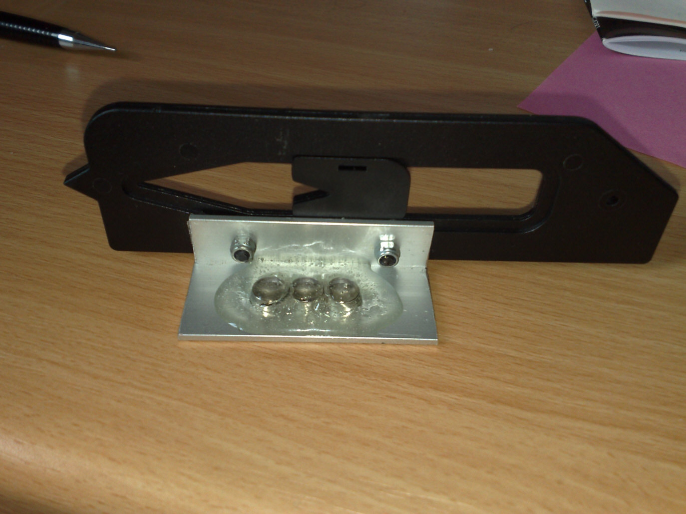 Alte Einstelllehre auseinander gebaut, Aluwinkel genau parallel angeschraubt, auf Rückseite Neodymmagnete angeklebt. BB hält jetzt Super drauf.